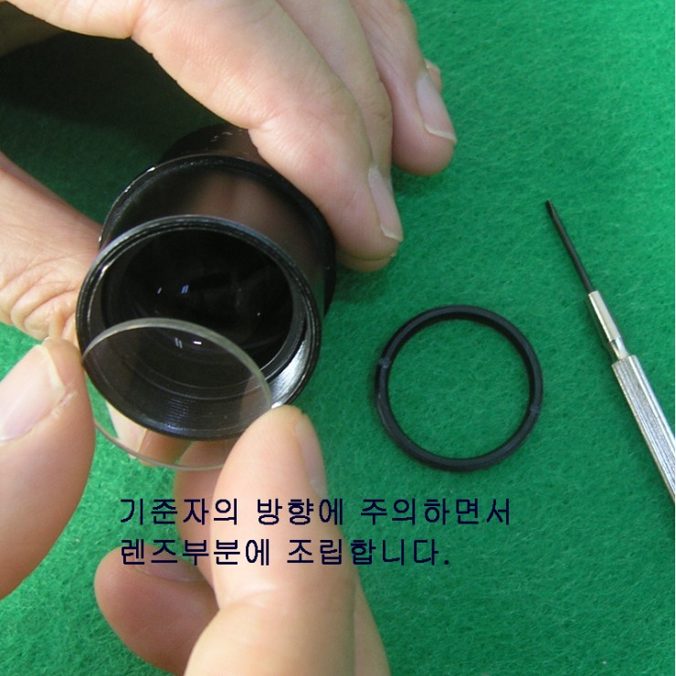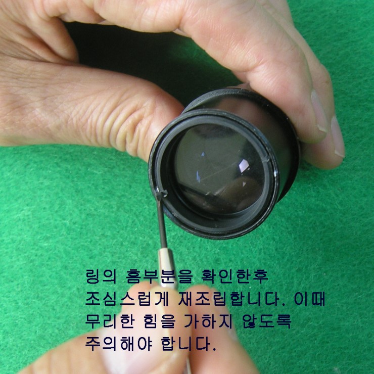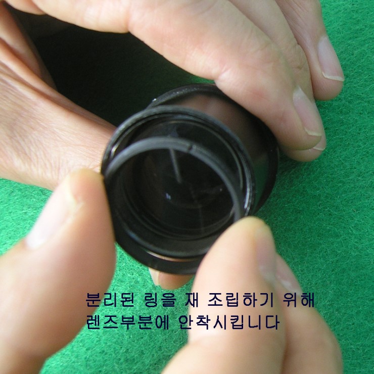 분리했던 링을 렌즈부에 다시 안착시킵니다.